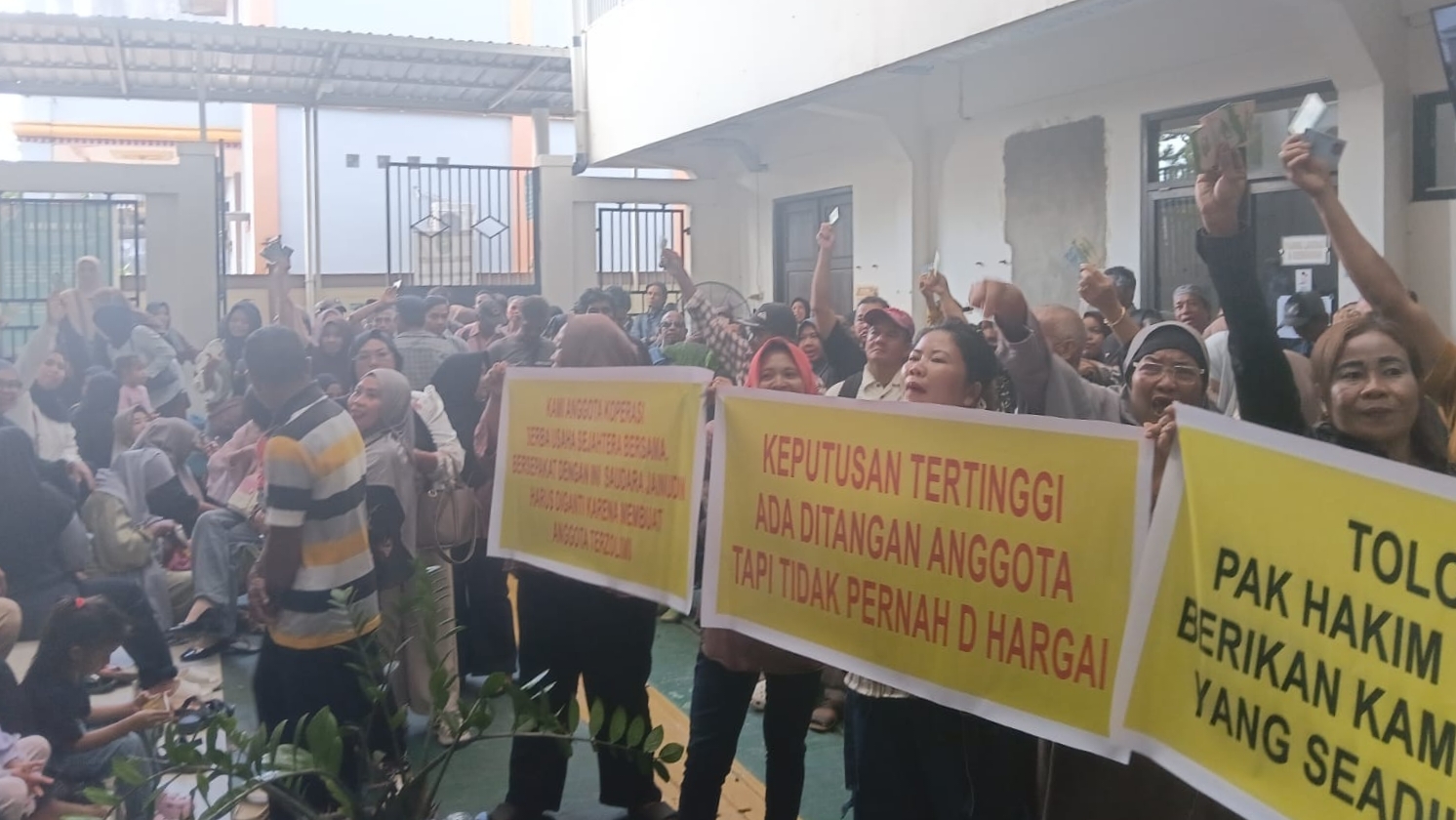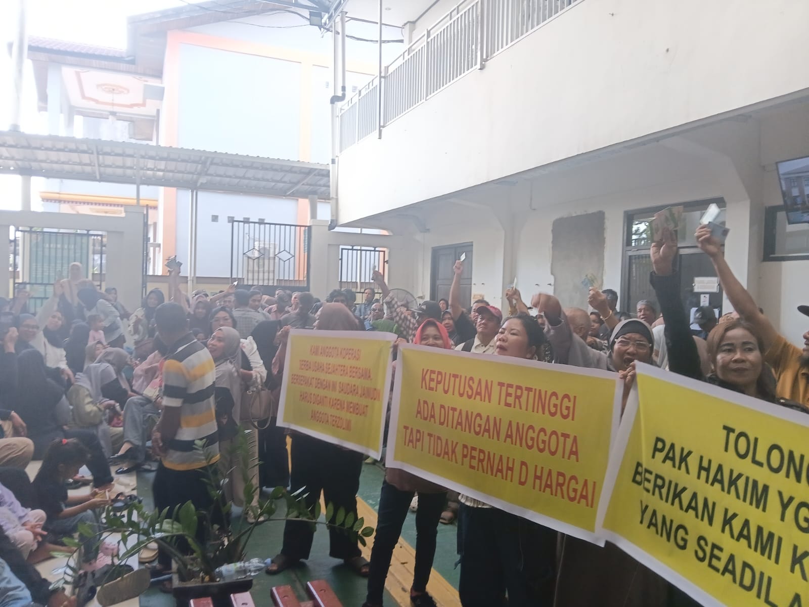 Para anggota tampak berdiri berdesakan di area pengadilan. Mereka membawa aspirasi yang telah terpendam selama hampir empat tahun. Bagi para anggota, proses persidangan ini bukan sekadar agenda hukum, melainkan upaya memperjuangkan kejelasan serta keadilan atas keberlangsungan koperasi yang menjadi penopang ekonomi mereka.